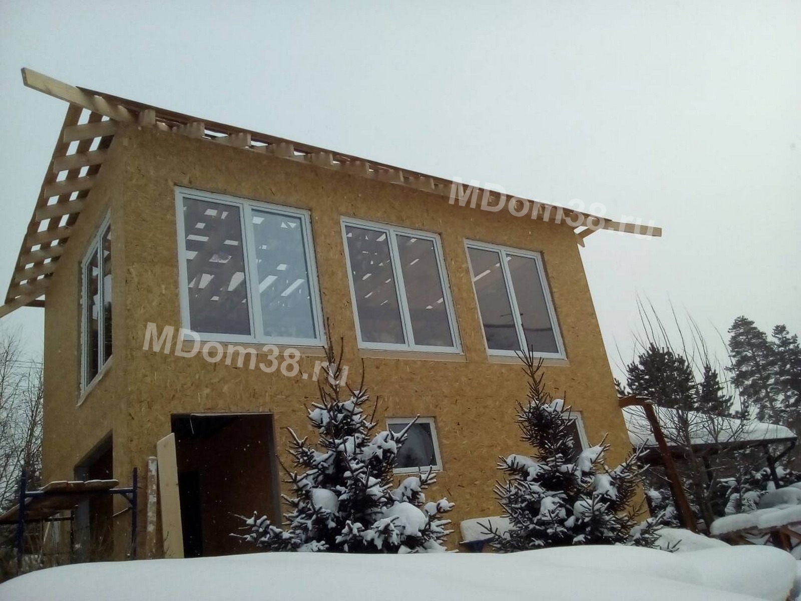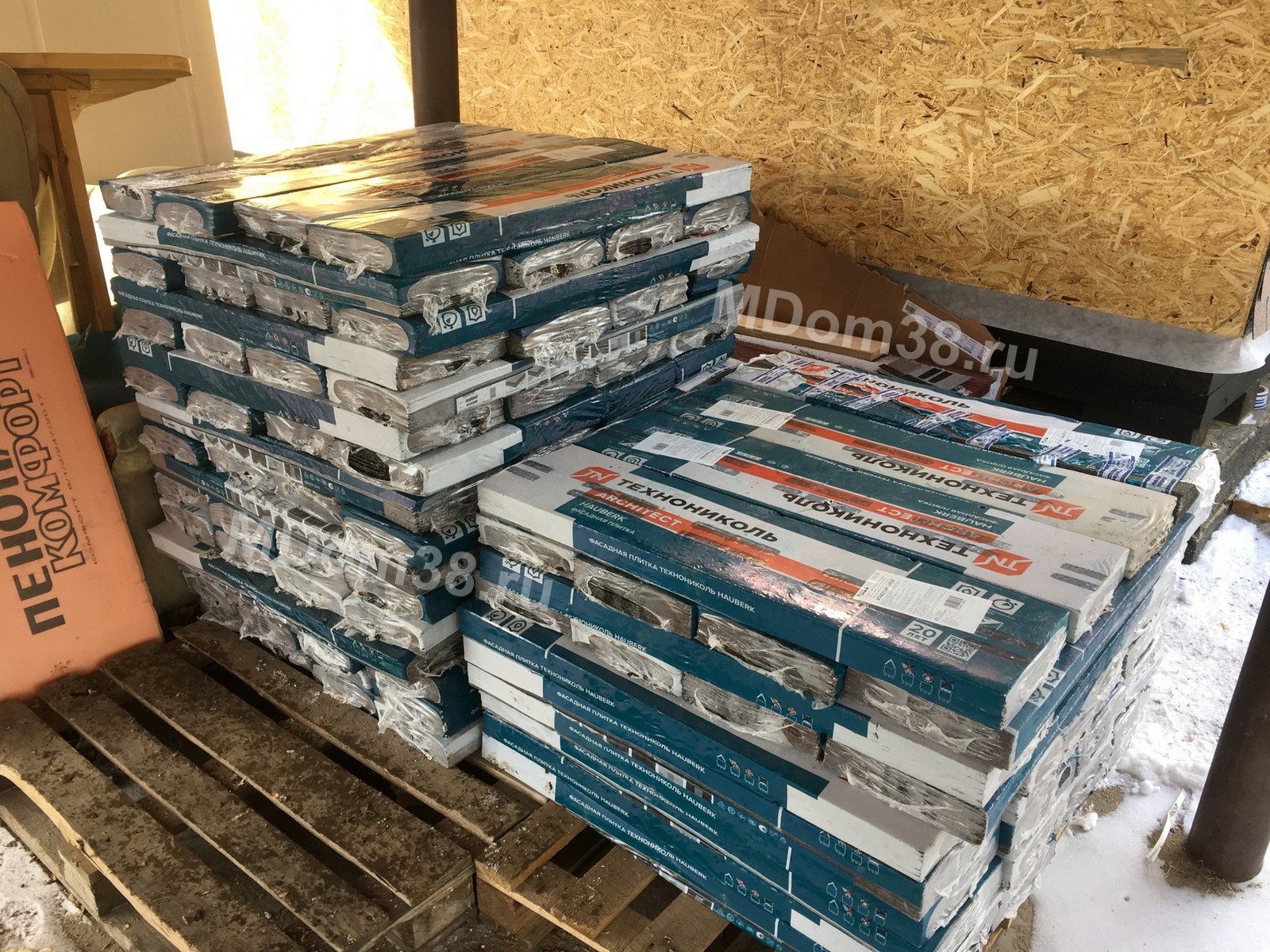 - Комплект листов OSB-3 (1220*2440 мм или 1250*2500 мм) для наружной и внутренней обшивки каркаса. Листы поставляются в нераспиленном виде. Производитель - на выбор.